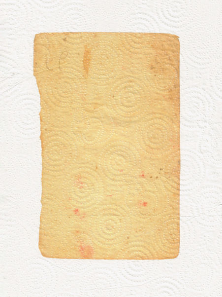 These materials were scanned, reprinted (with a standard printer) and then impressed onto paper towels. By forcing a marriage between disposable cleaning sheets and archive materials destined for preservation, memory's ability to provide a sense of belonging and context enters a stage of stagnation. If the paper towel fulfills its role, the memory will be discarded. But allowing memory agents to exist without connecting them to everyday life achieves a similar result. Either way, the validity of memory is undermined, as it diminishes in both value and meaning. As its promise loses its luster due to this inescapable loop, the experience of helplessness grows.